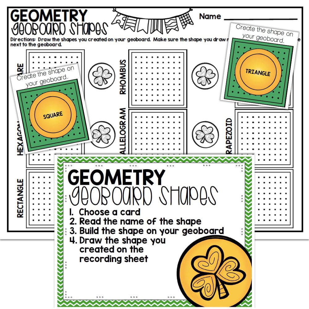 A 2nd grade geometry math center in which students draw different 2D shapes to match the shape on the card.