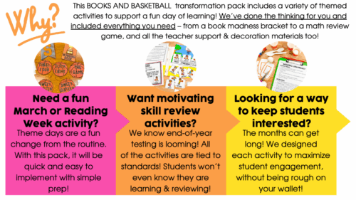 Get ready to score big with learning and excitement! The Books and Basketball Transformation Pack is here to make your educational goals a slam dunk, fostering teamwork, creativity, and a love for reading and math. Whether you’re celebrating March Madness or just bringing the spirit of the game into your classroom, this pack is your all-in-one assist to an unforgettable day of learning.