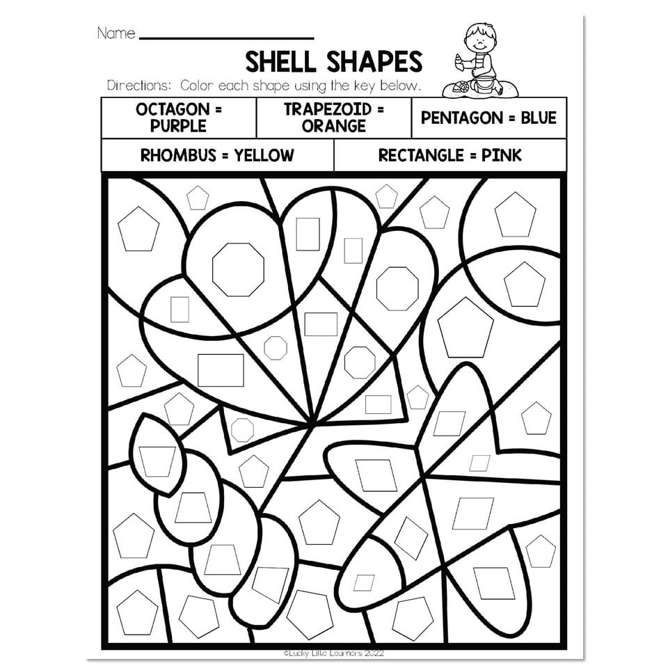 This 2D shapes math worksheet gives students the chance to practice shape ID in a colorful way! This activity is a nice addition to Beach Day or any ocean-themed unit.
