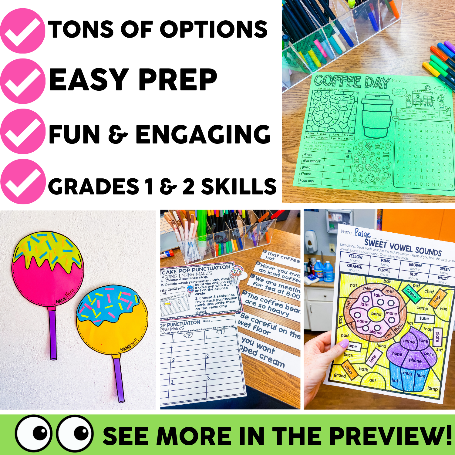 - Phonics and Vocabulary: Blend sounds with Blended Flavors, sort vowel sounds with Coffee Beans Sort, and more to strengthen phonics skills.