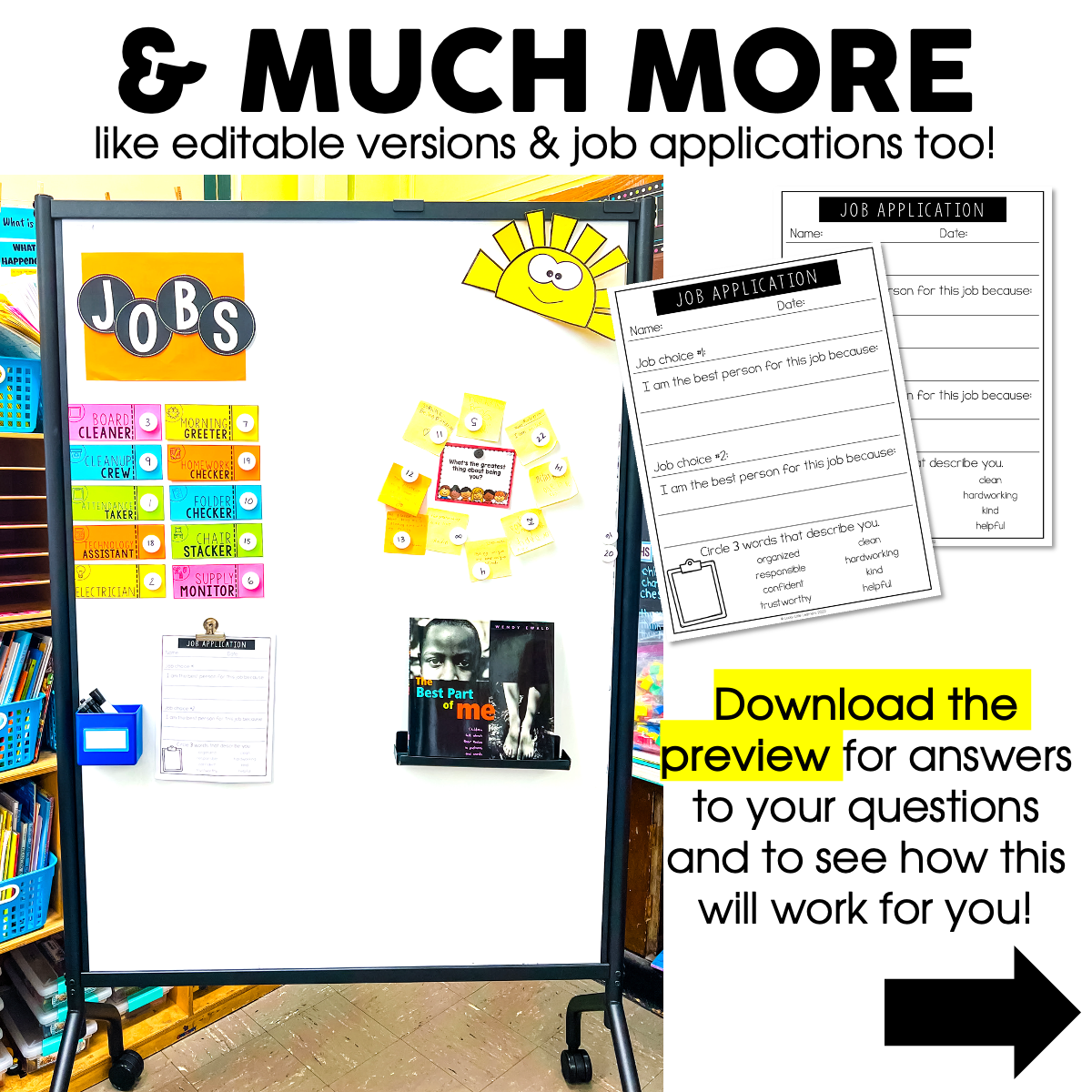 I am so excited to use these classroom jobs this coming school year. I like that there was different options on how to display/use the product. I also liked the job application so students have choice of their jobs and will take more responsibility. Thanks!