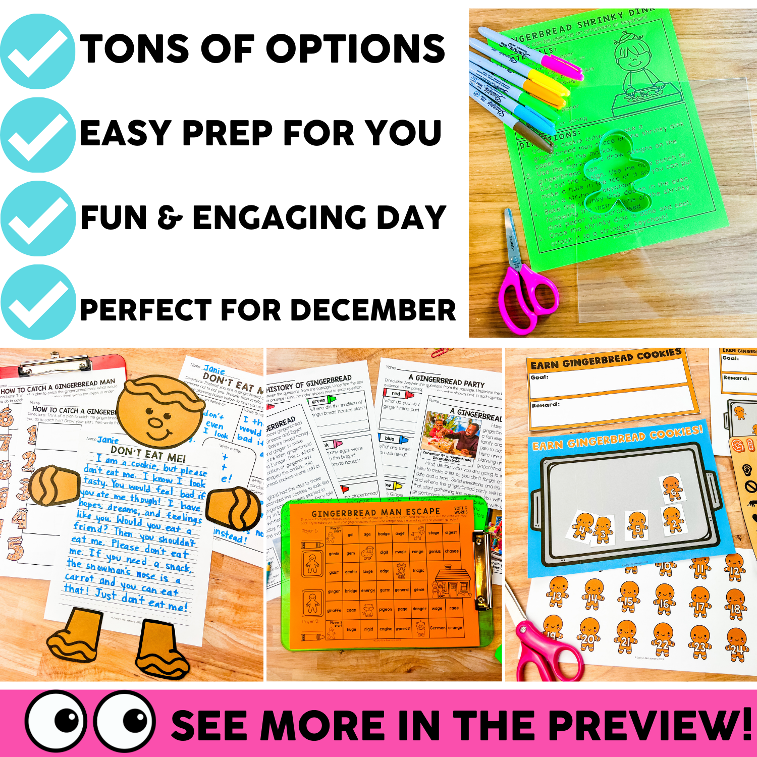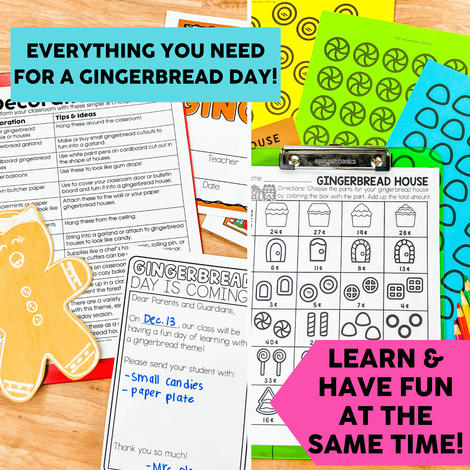 This Gingerbread Day classroom transformation is perfect for winter review or a class holiday celebration! It includes a variety of themed activities to support an amazingly fun day – or even multiple days – of learning! We’ve done the heavy lifting and included everything you need for this gingerbread day – from a list of decor ideas to a student completion certificate, and all the fun activities in between!
