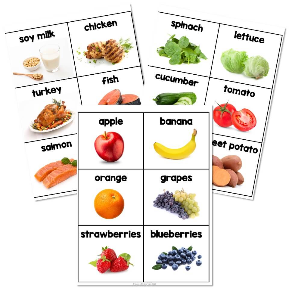 Real food picture cards perfect for a dramatic play center, vocabulary practice, sorting, small group and more!