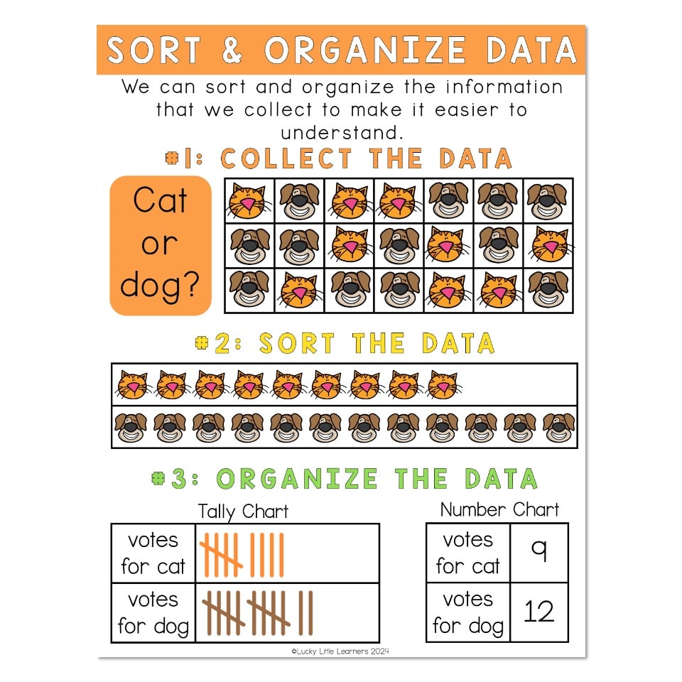 An anchor chart to aid in teaching how to sort and organize data.