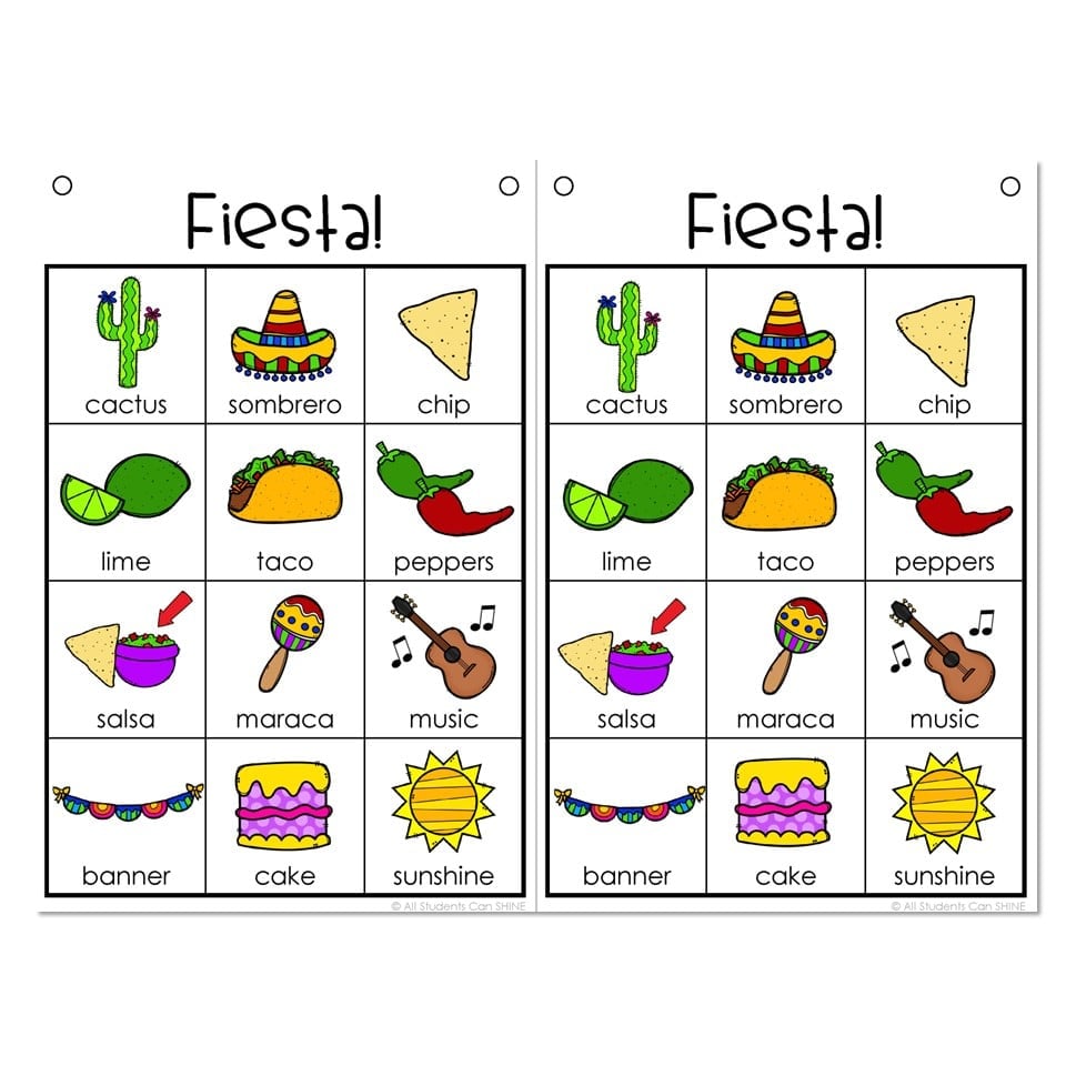 A fiesta themed vocabulary word list.